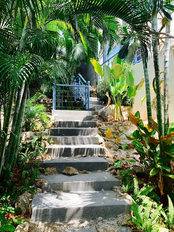 Paris is our split level two bedroom villa which is nestled amongst beautiful tropical gardens. Both bedrooms are best described as being self contained with their own en-suite bathroom and access to a private swimming pool.