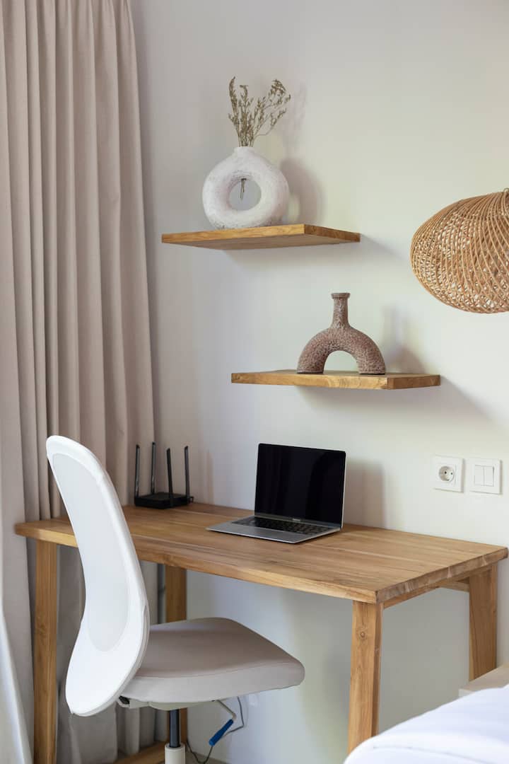 A room with wifi that’s well-suited for working.