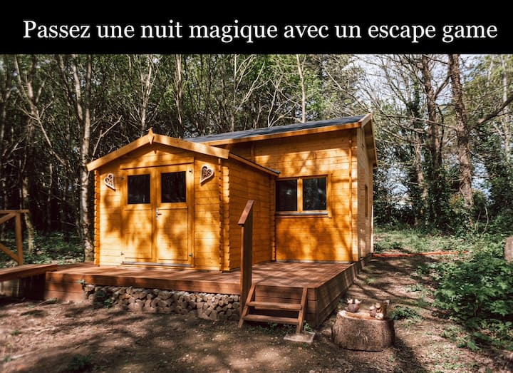 Unusual escape room cabin with jacuzzi access