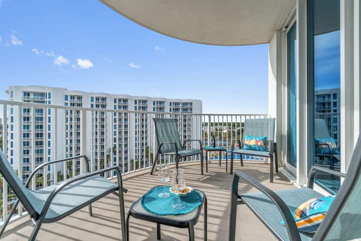 Welcome to the 9th floor Destin Diamond Oasis! Our newly renovated Beach vibe condo provides an open concept living space with 2 bedrooms, 2 bathrooms, including a walk in shower, and laundry. From the moment you enter you will be mesmerized by the colors of ocean, and tranquil waters.