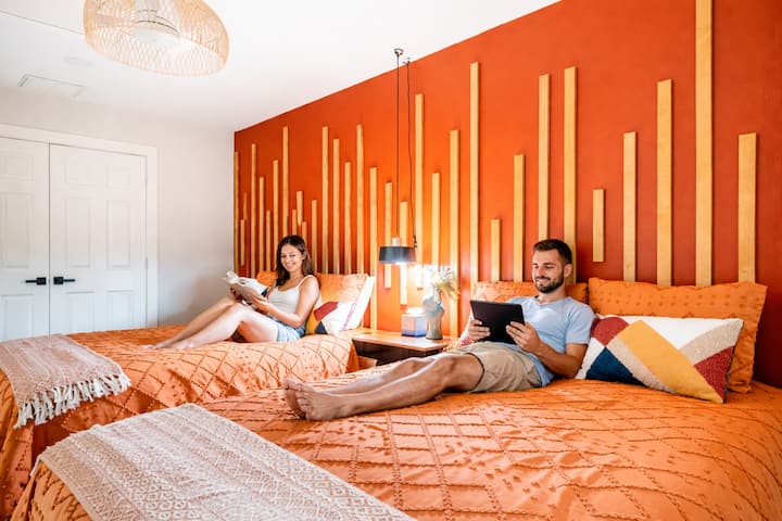 ✔ Bedroom 2: 2 Queen beds, sophisticated accent wall, and two nightstands