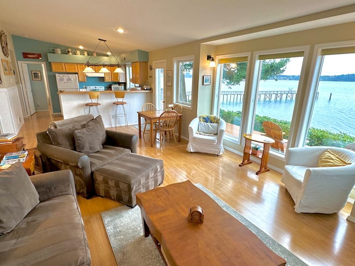Welcome to Sandpiper Haven! A sister property to Sunset Beach Haven, this beloved retreat on Whidbey Island is the perfect getaway. Nestled on famous Penn Cove, this charming single-story home offers direct beach access, stunning 180° views of the Olympic and Cascade Mountains and all the comforts of home including Air Conditioning.