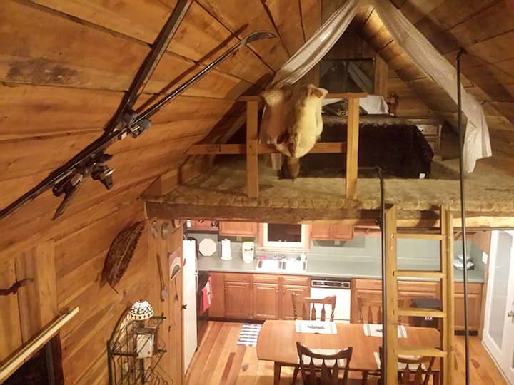 Claycomb Chalets located near Seven Springs and Hidden Valley Resorts in the Laurel Highlands Mountains. Our authentic mountain chalets sleep up to 7 guests and feature one master bedroom with queen-sized bed, two lofts and a sleeper sofa in the living area. One loft has 3 twin beds and the second loft has one full-sized bed. The second loft can also accommodate a full or queen sized air mattress if necessary. Our Chalets are equipped with a full kitchen stocked with pots, pans, plates, silverware and cookware. Just bring your groceries or have us pick you up some prior to your stay!