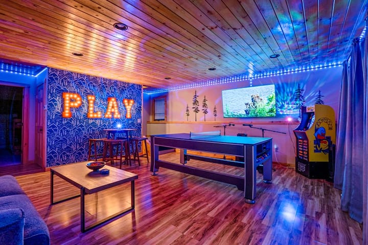 🎮 Game room w/pool, ping pong, karaoke, Pac-Man, air hockey, 65" smart TV, lounge area and more