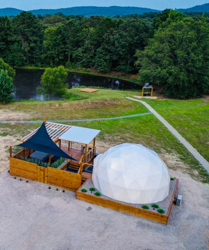 A private road from the street entrance leads you to the lower portion of the property to the geodesic domes. Sol is the closest dome as you enter the property and the door will be marked "Sol” to ensure you are in the right space. Guests have access to their own private patio and the commons area located by the pond. Sitting above Moonlit Glamping is our newly redesigned farm home “Green Oak Retreat.” The guests staying there have been notified that the pond and commons area is designated for guests specifically staying at the domes in Moonlit Glamping. Please notify us if there is any disturbance from the home above on the property.