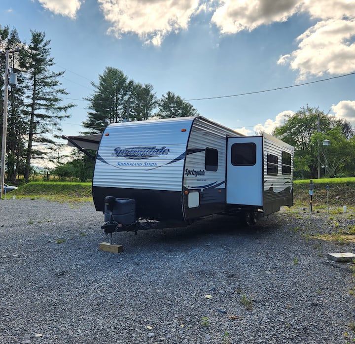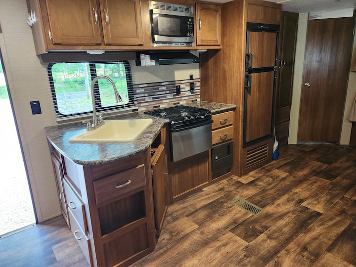 The firepit, alfresco dining, and bbq area are great for summer trips.