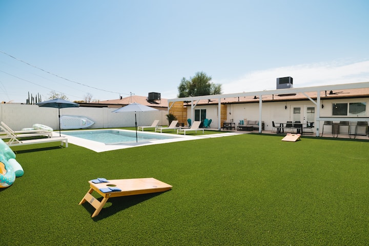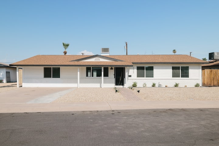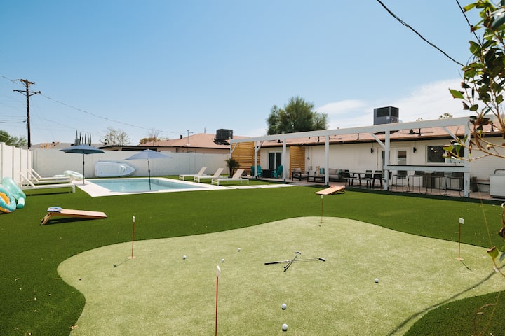 Immerse yourself in this modern contemporary residence, perfectly situated in the Valley of the Sun, where relaxation and indulgence await. Unleash your inner chef in the kitchen equipped with top-of-the-line appliances, designed to inspire culinary excellence. (FULLY STOCKED KITCHEN) The accommodations throughout this home are absolutely beautiful, offering a harmonious blend of modern aesthetics and refined touches, courtesy of a renowned designer in Phoenix. Guests will enjoy exclusive access to every area of the home, including the backyard oasis complete with mini golf, private heated pool (small daily fee for heating), fire pit, HUGE covered patio, outdoor kitchen, and BBQ. Feel the warmth of the sun as you relax poolside. Feel like you have an entire resort just to yourself! No expense was sparred when creating this newly renovated mid century property with every designer touch that you can expect in your perfect Scottsdale destination home. You'll be minutes away from the best restaurants, nightlife, world-class golf courses, hiking trails, and highly regarded shopping malls such as Fashion Square Mall.