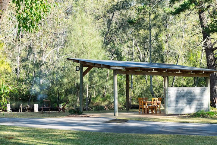 The 3.2m wide boat ramp enters a small creek which feeds into St Georges Basin. There are limitations on the size of boat that can be used on this ramp - we recommend only tinnies, other small boats or kayaks. The creek is also narrow (15m) and shallow. If you intend to bring a boat please speak to us in advance. Please also note the boat ramp is accessed via a 200m grassy area with trees. In or after wet weather this area may not be suitable for vehicles. We take no responsibility for accessibility based on weather conditions. Guests are responsible for their vehicles and property at all times.