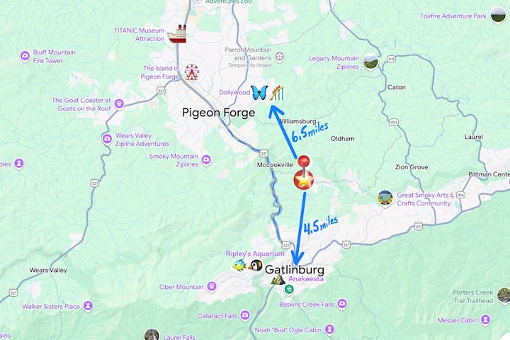 ✔ 6.5 miles to Dollywood 🎢 🦋