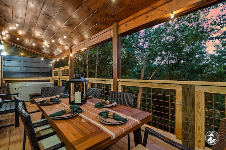 A wonderful stay awaits you at The Cozy Fox! 🦊 This new cabin is perfect for your family trip or a couple's getaway (sleeps up to 8). Experience a true mountain cabin only 1.7 miles from the parkway... halfway between Gatlinburg and Pigeon Forge! Peaceful, beautiful views bring everyone together with 60 feet of outdoor covered deck space featuring outdoor dining, hot tub, fire table, and relaxing daybed swing. Weber BBQ grill on the roomy front porch, and enjoy a fun-filled game room!