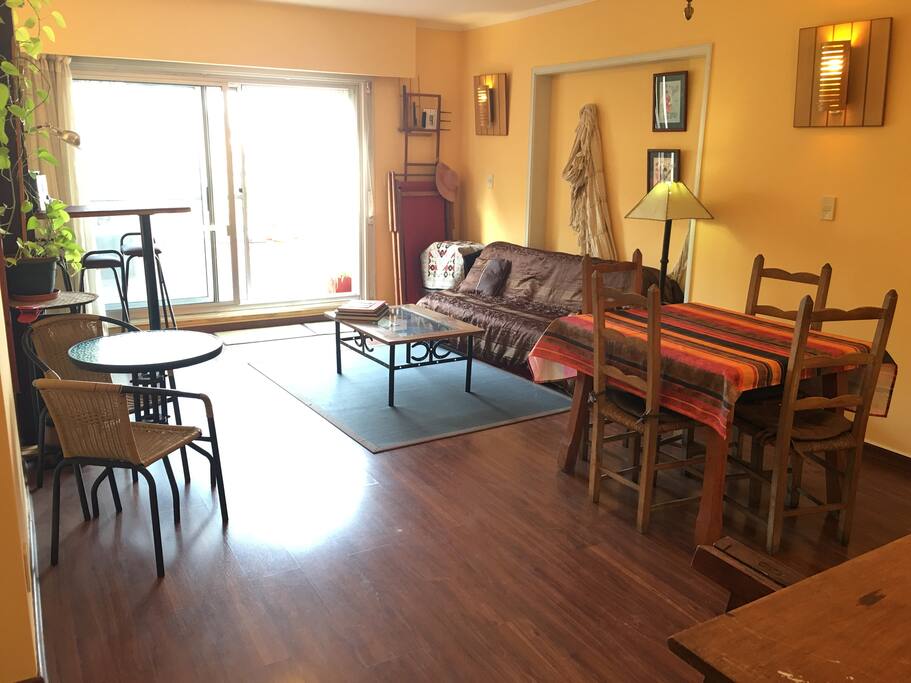 + 1 living opening on the teracce with one sofa new bed 2 persons, HIfi chain, books and games, one table 4 chairs, phone, plants, one high table for breakfast viewing at the RIo de la Plata. one table for outside. long sunchair, hamac.