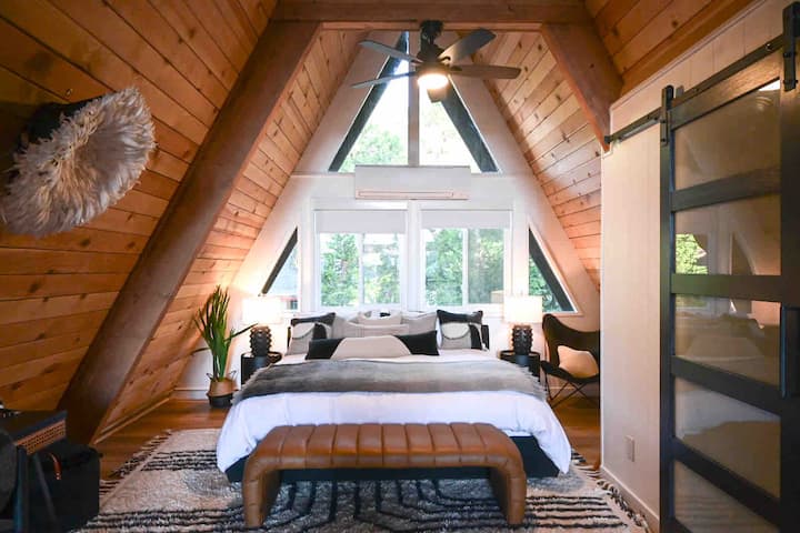 Chic AFrame Lake & Forest Views + Hot Tub 2 decks