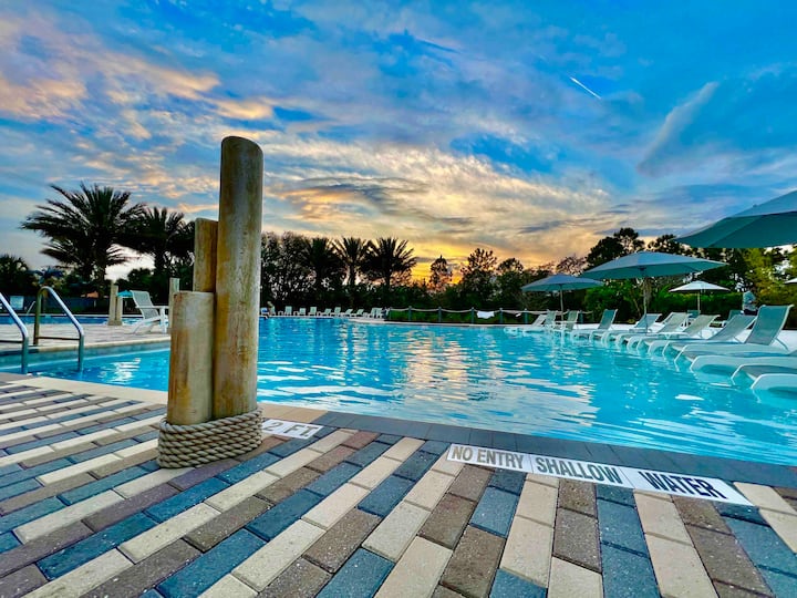 Step into your dream Orlando getaway! This new luxury townhome in Champions Gate is designed to give you the comfort and style you deserve. You’ll enjoy 3 beautifully appointed bedrooms, 2.5 baths, and ultra-comfy beds for the best rest ever. Just 15 minutes from Disney Parks, you can explore the magic or unwind at the Resort’s pool, Water Park, Gym, Arcade Room and more. With shops and restaurants just minutes away, you’ll have everything you need for the perfect stay—all waiting for you!