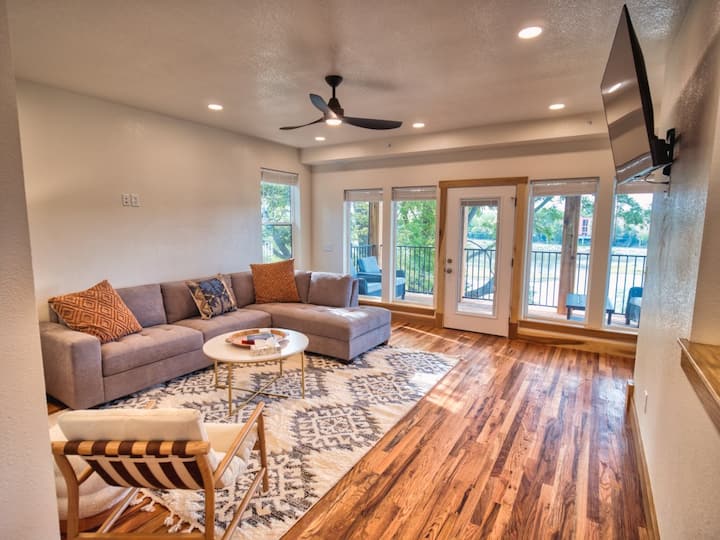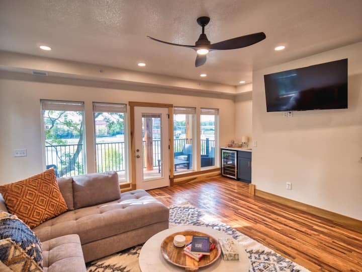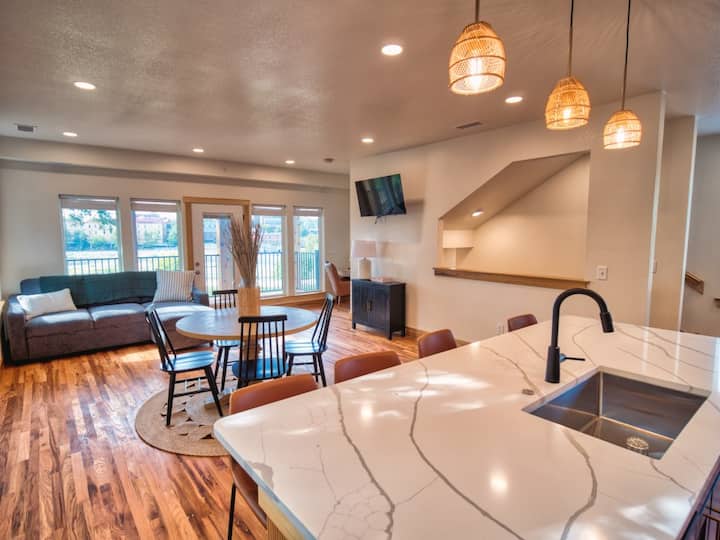 Revel in this stylish 2BR 2.5 Bath home, nestled on the banks of the Kansas River. It provides a tranquil and picturesque base from which you can explore Lawrences' exciting restaurants, coffee shops, parks, shops, attractions, and landmarks.