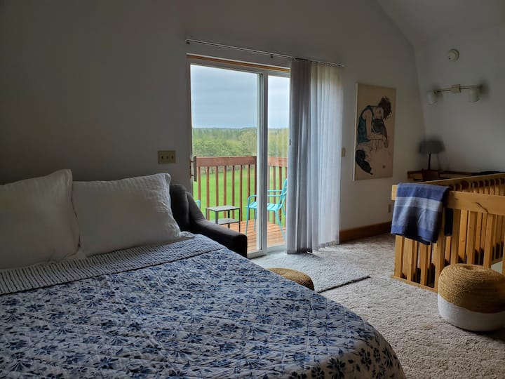 A long private driveway that passes over Otter Creek opens up to reveal the property tucked against the trees. Zen Frieda is the barn shaped guest house 30 ft from the main home. The main home is periodically occupied by the welcoming owner and family. In the future it will be available to other guests as well.