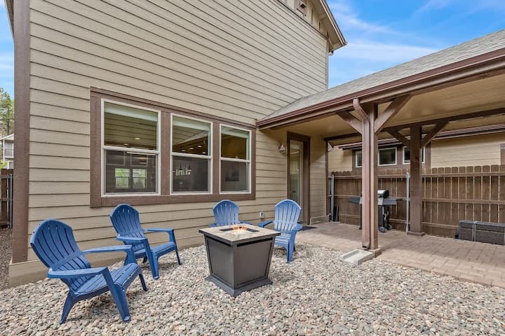 Flagstaff 3-bed retreat with fireplace, backyard fire pit and BBQ grill.