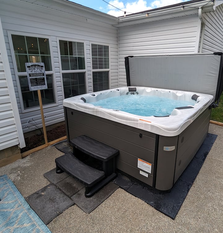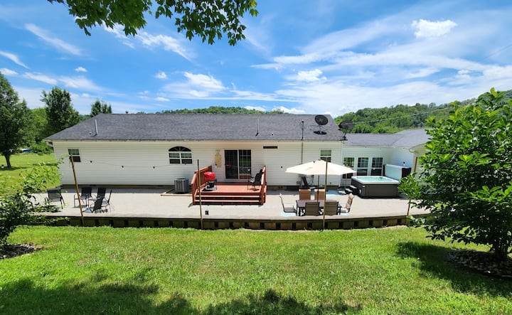 Welcome to Echo Hill, our updated woodside cabin close to Hocking Hills offering a private setting for peace & relaxation. Our cabin offers privacy, an expansive patio complete with a firepit, outside dining & deck plus a hot tub. Plenty of room with 3 bedrooms, 2 full bathrooms, laundry, well equipped kitchen & lots of living space. Easy access to the natural wonders & outdoor adventures this stunning region has to offer. Bring the whole family! You'll be comfortable here!