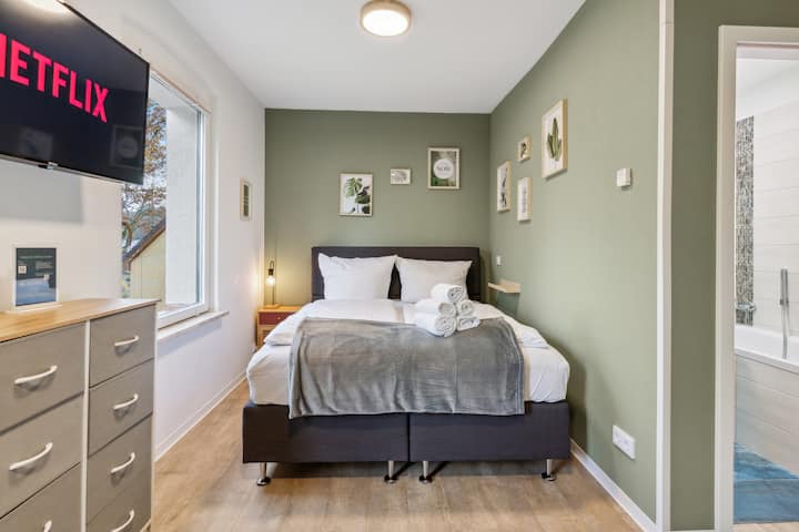 Oasis for 3 - Bath Tub, Netflix, Parking, near BER