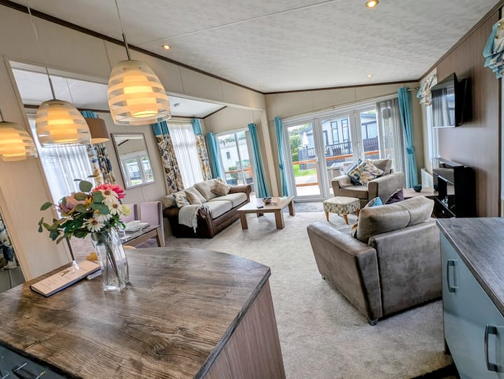 This dog-friendly haven offers a stylish open-plan layout, a full family bathroom with bath/shower & a private en-suite. Enjoy modern conveniences like a dishwasher & washing machine. Perfect for families or couples, relax indoors or dine al fresco on the deck. Nestled in peaceful surroundings, it's the ultimate blend of luxury, nature & relaxation, with superb on-site park facilities too!