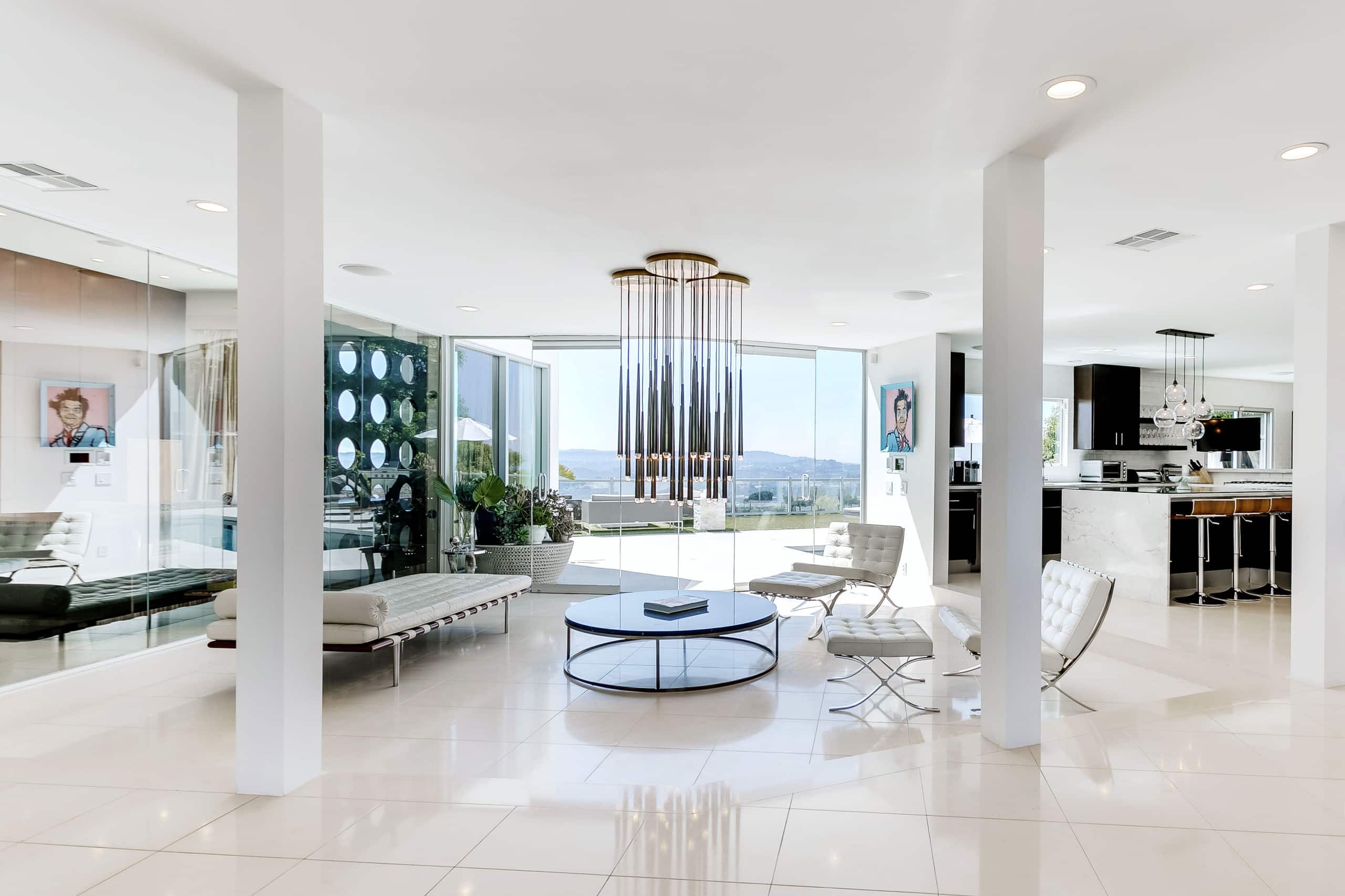 Feel like a pampered movie star in this private, spacious, ultramodern hilltop villa. Host a screening in the luxurious theater room or simply enjoy the outdoor wet bar, pool, and stunning panoramic views from the deck.