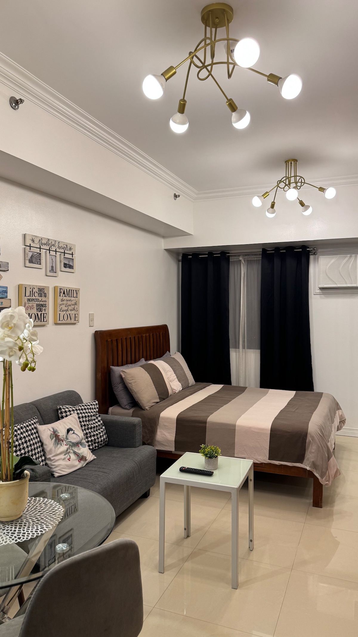 Fully furnished single bedroom condo unit situated in the prime location of the metropolis. Conveniently located with fast food chains, banks, churches, universities and medical institutions all around, with the added benefit of a mall within the condominium. It is a perfect living area for families, business enthusiasts, travelers and for anyone who plan to have a staycation.