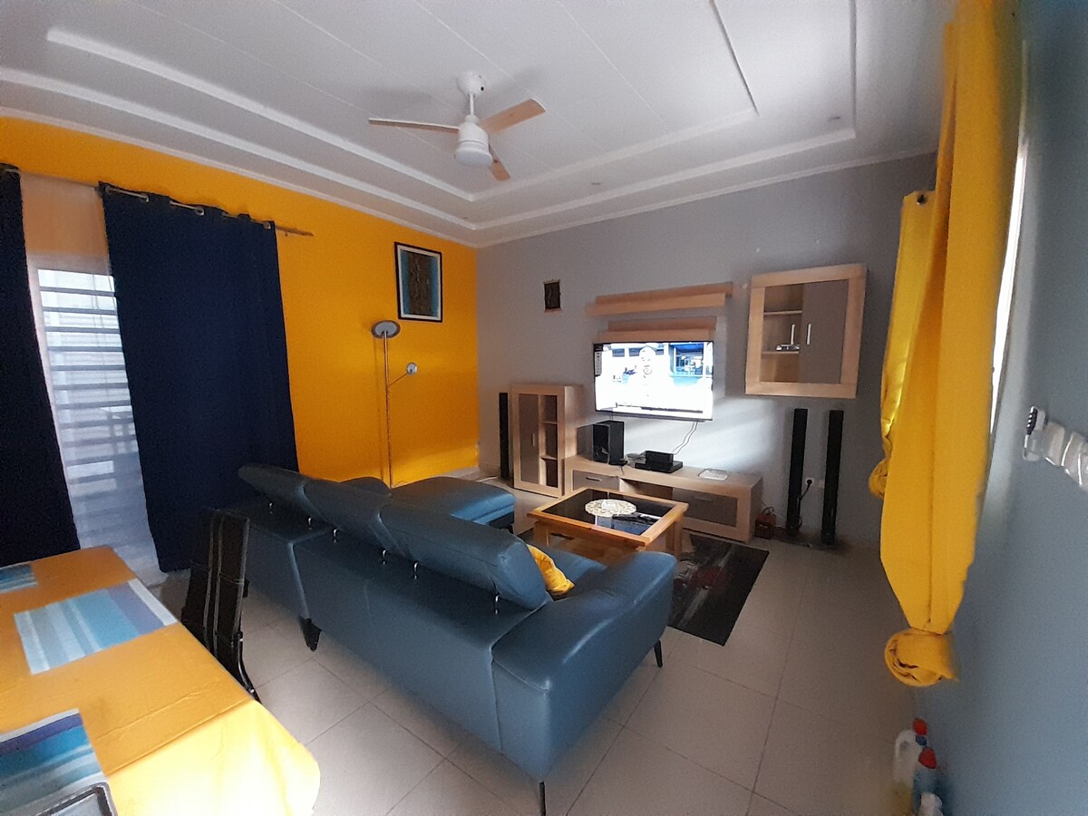 Located in BALOUZON, a peaceful and safe neighborhood of Daloa, our residence is just behind the court of appeal. Easy access and only 5 minutes from the city center. You will find the comforts you need for an unforgettable stay. We provide you with staff for your various errands and maintenance of the premises during the period of your stay. AMENITIES -WIFI - Water heater - 55" TV with Netflix - Workspace - Furnished kitchen
