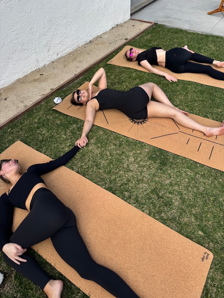 Kick off the celebration with a private yoga experience brought right to your Airbnb. Designed for bachelorette or bachelor crews, this session blends energizing flow, sculpt, or slow stretch with a curated playlist your guest of honor will love. We’ll pull intention cards to set the vibe, move and laugh together, then wind down with a mini sound bath to seal it in. No experience needed—just good energy and your favorite people.