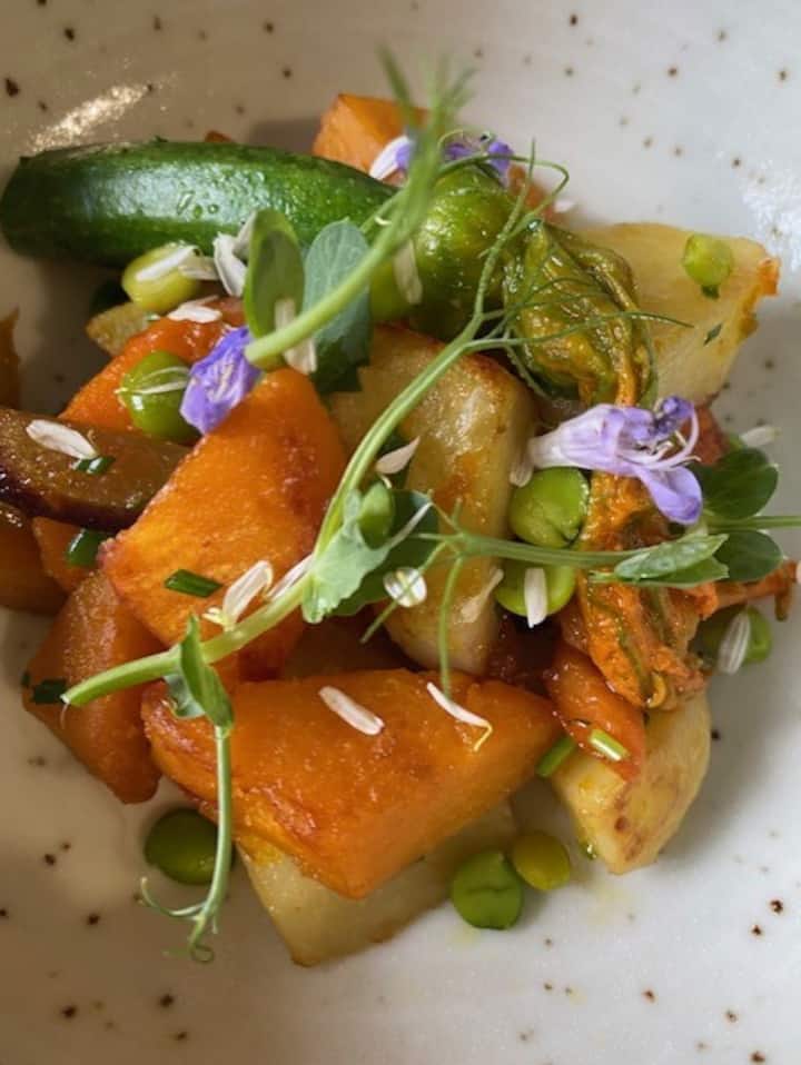 A dinner or lunch based on plant-based products, preferably seasonal. A healthy and colorful taste experience.