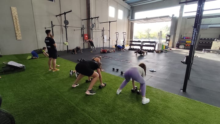Functional training session or adapted CrossFit, focused on moving the whole body, improving mobility and feeling active and strong during your trip.