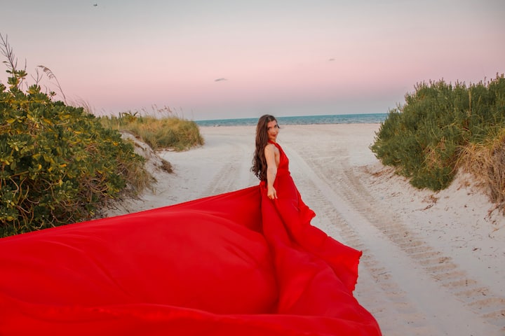 Flying dress photoshoot in Miami – feel iconic, bold, and beautifully unforgettable.