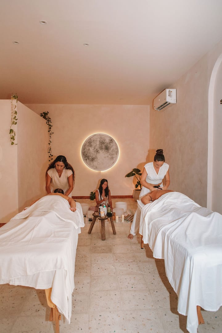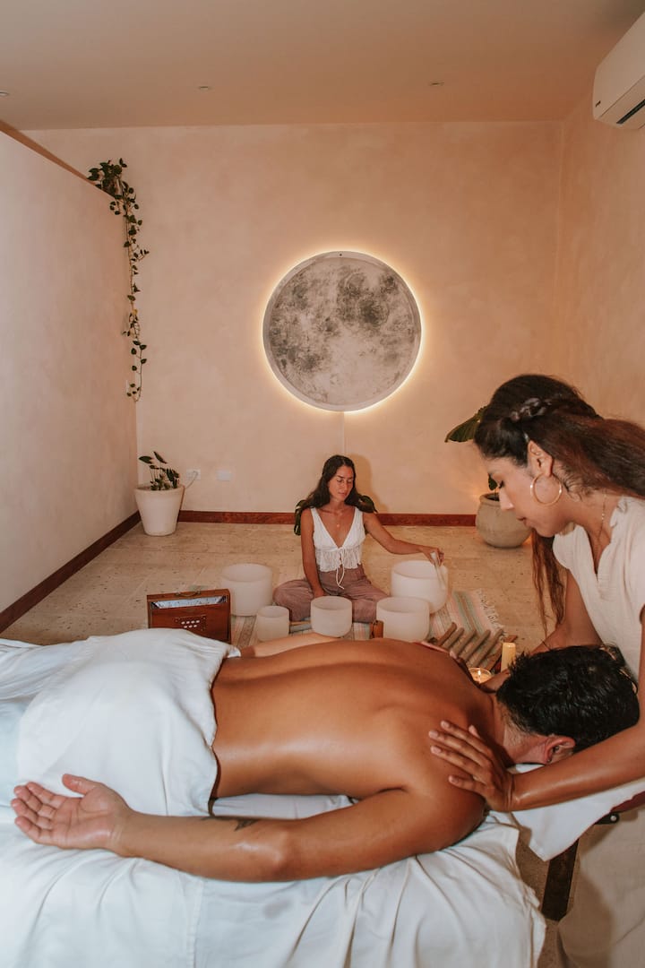 A serene and intimate experience designed for two. Enjoy side by side a full-body massages to release tension and foster deep relaxation, followed by a soothing sound bath with crystal bowls and gentle instruments to harmonize your energies and create a shared state of peace and connection. Perfect for couples seeking relaxation and soulful bonding.