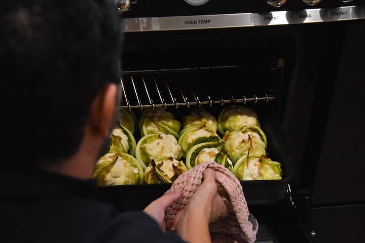 Savor a range of foods in this feast featuring whole roasted cauliflower, fresh salads, homemade dips, and slow-cooked lamb with za'atar.