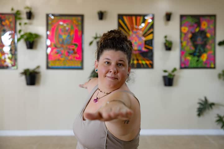 I’m Kaitlin, owner of Bigfoot’s Rockeaters and a certified 200-hour yoga and 200-hour meditation teacher, now completing my 500-hour training. My classes are mindful, inclusive, and heart-centered.