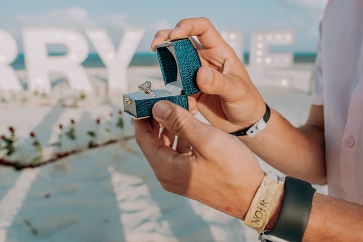 We created a spectacular marriage proposal experience with giant LED “Marry Me” letters, professional assembly and strategic planning of the surprise. We design a romantic atmosphere with petals, LED candles and a decorated path, a bouquet with a personalized phrase and every detail carefully coordinated. We capture the "yes" with photographic coverage, mini-session, edited images and video with aerial shots. Includes live music with saxophone or violin for a unique, elegant and unforgettable moment.