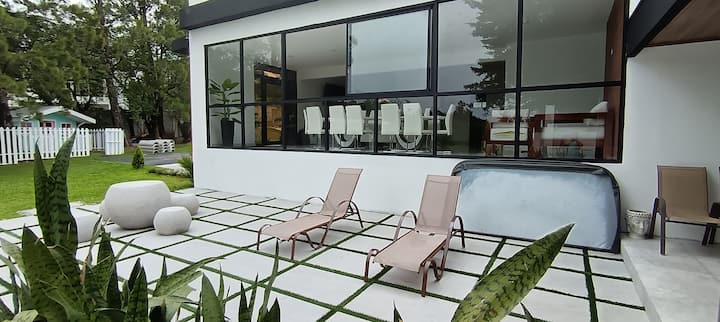 Just 10 minutes from downtown Monteverde, you'll find our villa, completely remodeled this June 2025 to offer you a unique stay, where you can not only rest from a day of hiking but also relax in its spectacular 6-person jacuzzi area, cool off in the pool while grilling, spend an afternoon with friends on the basketball court, have a picnic in the vintage garden, and end the night with a moonlit fire in the fire pit area.