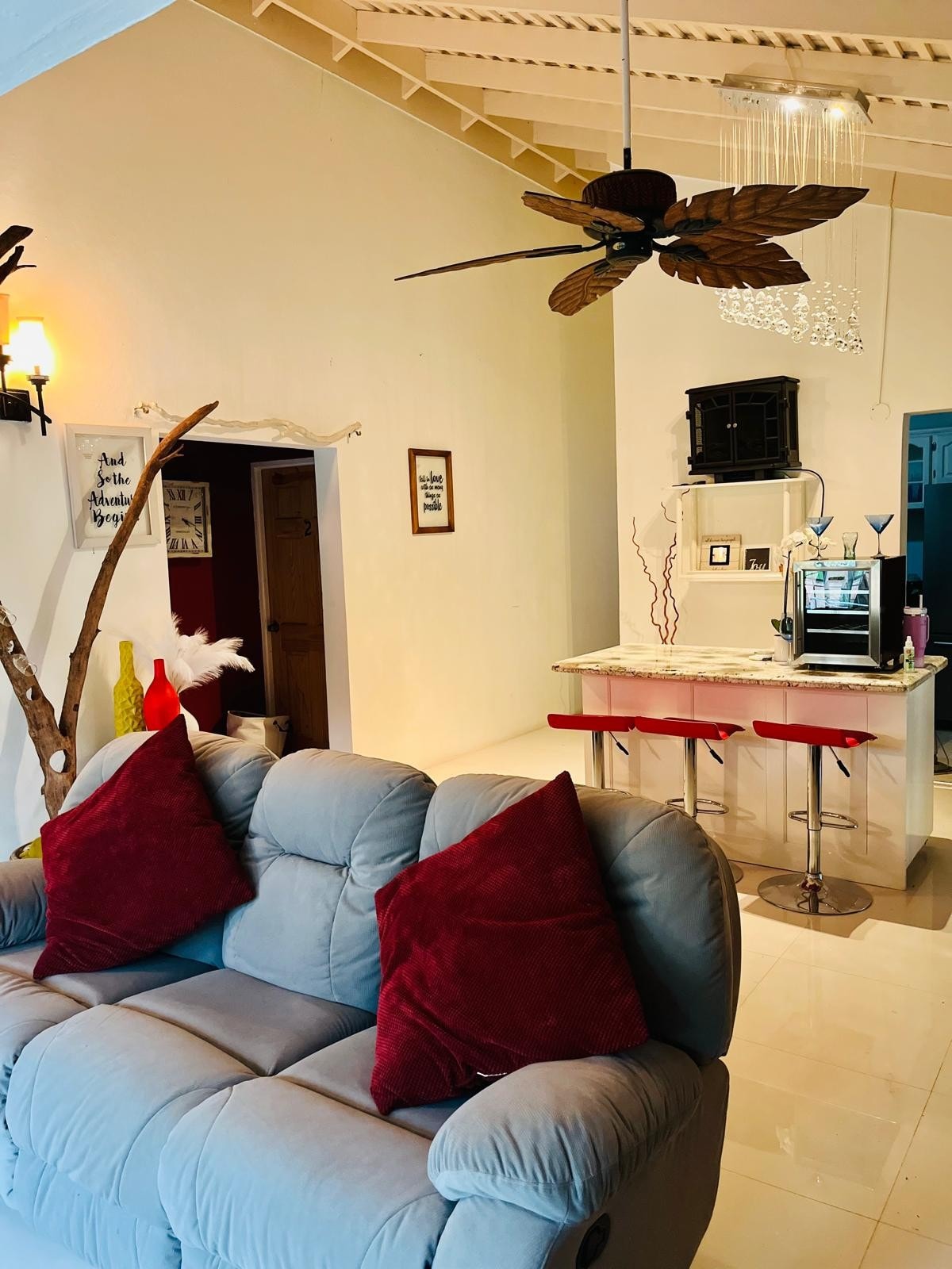 Enjoy the experience of feeling like you’re actually on vacation staying at this home. This unique-stylish house is in the heart of the town, close to the airport, Ochi Rios and Kingston. This upscale unit is an artwork of its own.With upscale designs to enhance your stay to ensure you are getting your monies worth.This unit is comparable to a stay at a 5 star hotel. Each room leaves you in awe.We ensure quality stay and quality service. An experience in itself. 1/3 of my listings.