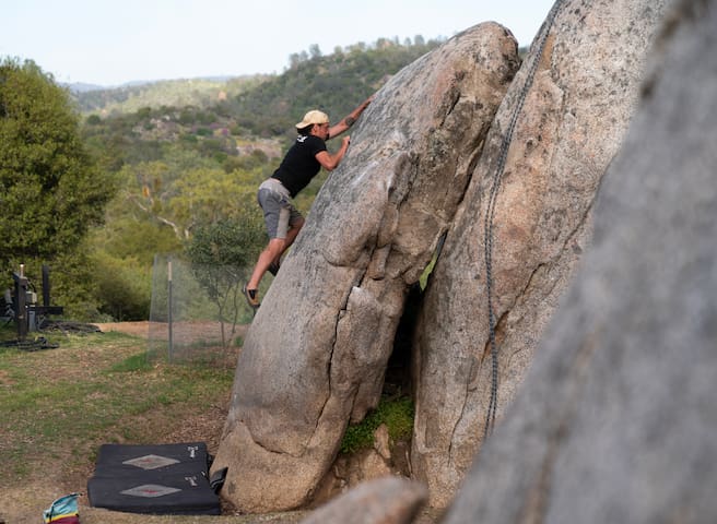 Hi, I’m Will. I’ve been living and working in Mariposa since 2018. My Dad (Dean) and I have been “farming” the natural boulders on our property, making them climbable for recreation. We also love Disc Golf and have been creating a course we love to play. My wife and I have two dogs: Lola and Rosie, and two cats: Toph and Shady.