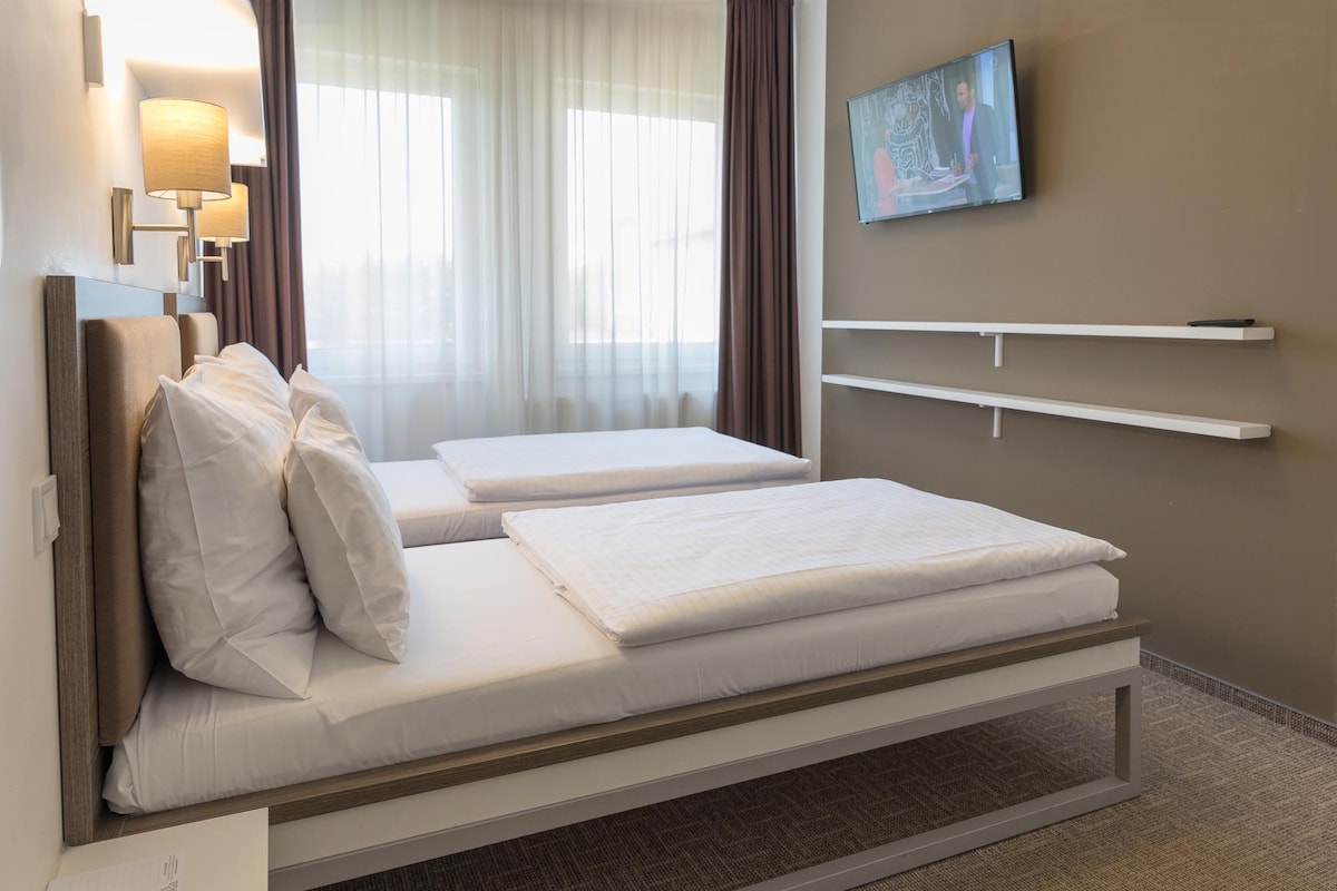 Levné ubytování v malém pokoji s palandou v naprostém centru Prahy přímo pod Pražským hradem. Pokoj je idální na přespání pro nenáročné turisty hledající výhodnou cenu. Pokoje jsou součástí designového hotelu s non-stop recepcí a je v něm podávána fantastická snídaně formou bufetu, kterou máte od nás zcela zdarma! Na každém pokoji jsou pro hosty na uvítání připraveny kávové kapsle a minerální voda.