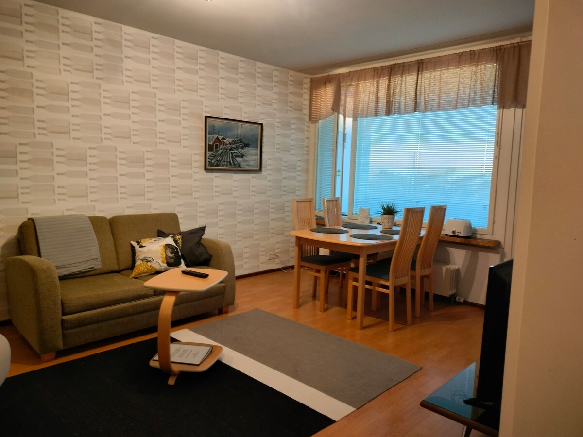 Planning a holiday or business trip? Welcome to the Taideniitty residences in the heart of Old Varkaus. Niitty is a cosy 50 m2 apartment on the first floor. You'll have a living-bedroom with a wood-burning stove. you'll also have a modern, fully equipped kitchen with basic necessities and a toilet with a shower. There are two beds, and with extra beds, even four will not be a problem. The apartment has a TV, Chromecast, console games and books. Free WiFi is available throughout the building.