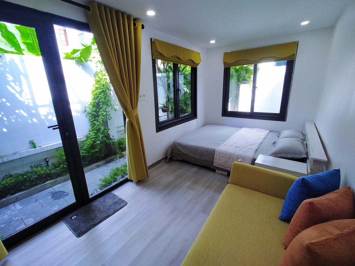 Phòng Lạch Tray nằm trong khuôn viên homestay Cửa Biển, nép mình trong khu vườn xanh mát ngay sau không gian cà phê sách, là chỗ nghỉ lý tưởng và độc đáo cho những ai cần một nơi mới mẻ, tách biệt với sự xô bồ ồn ào. The bungalow is located in a wonderful hideaway garden. The homestay is a part of Seagate Cultural and Creative hub which offers great coffee, pastries and cultural event organizing. We could organize film screenings, guided tours to historical landmarks of Hai Phong.