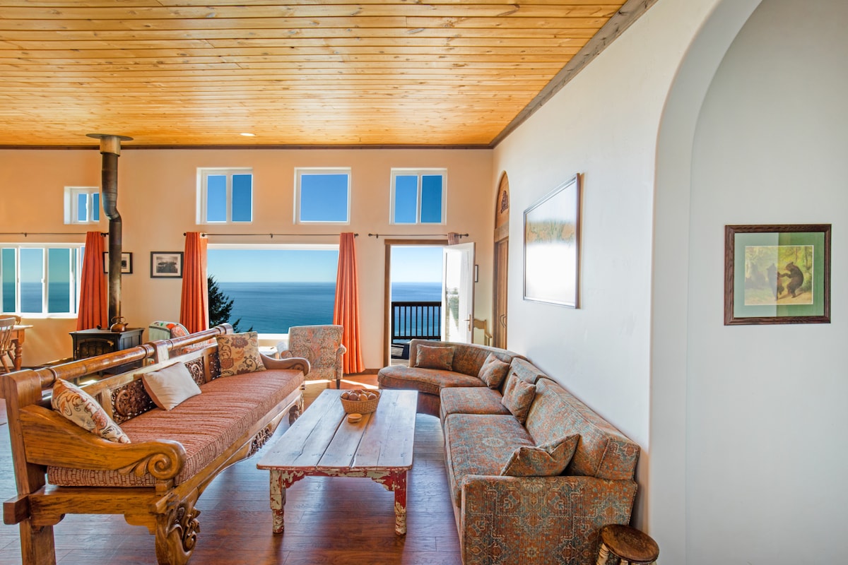 Holistic Haven offers a distinctive stay with our freshly remodeled lower studio cottage that serves as a calm retreat for your body, mind, and spirit. Take in sweeping views of King Range National Conservation from your private wrap-around deck or jet tub. Plush bedding, stylish kitchen and a living space with a view. Additional experiences available upon request. At HH, you don’t have to choose between ocean or mountain views. Double Stock Hot Tub Experience is now available!
