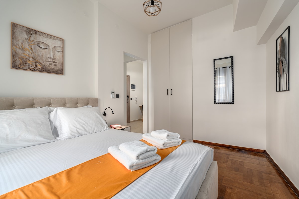 Just a few steps from the University of Piraeus, the metro, and the main port, our location offers the perfect base for both meetings and getaways. Whether you’re in town for a conference or passing through on your way to the islands, our 16 fully equipped, autonomous apartments combine and smart design with everyday comfort. paid Private parking, EV charging and a secure baggage locker are available on site, making your stay even easier and more flexible.