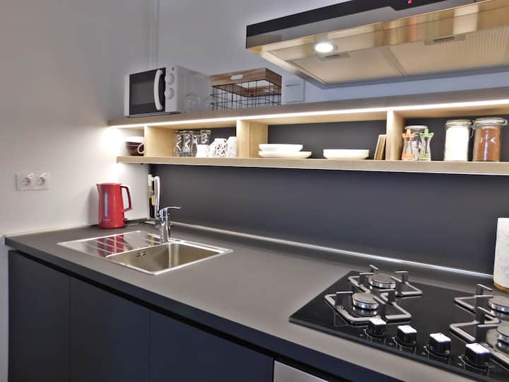 !현대적이고 새로 보수 공사를 마친 스튜디오 아파트. 테스 리나 거리에서 100m 떨어져 있습니다.